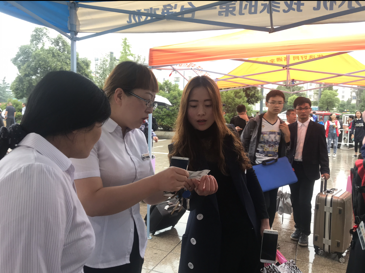 机务内勤刘佃云一到广场就帮助疏导进站旅客,她嘹亮的高声提醒着乘客,几点的乘客该进站,几点的乘客可以稍微等一下,因为候车室的人群已经太多,需要限时进站,拥挤的人群听到她的指导,知道还没检票,也就不挤着进去了。其他值班人员也帮着疏导人群,解答乘客们的各种问题,确保旅客能够及时、安全搭上车。