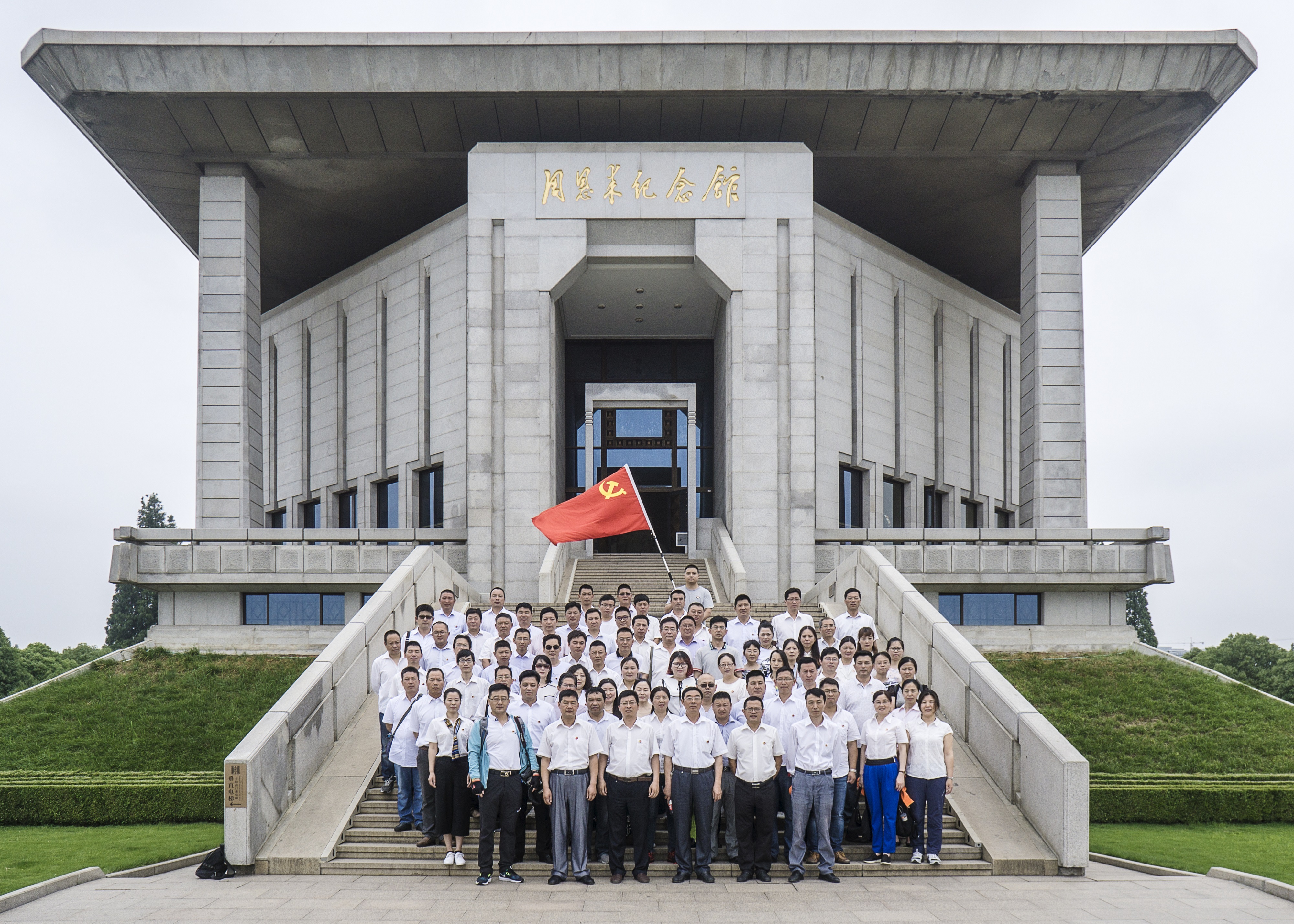 绿树成荫,湖水环抱,烈日炎炎,周恩来纪念馆显得格外的庄严肃穆。大家首先来到周恩来纪念馆主馆,周恩来总理汉白玉塑像前,大家整理衣冠,向总理塑像深深地三鞠躬,深切缅怀周总理的丰功伟绩。接着,大家来到周总理铜像处,由总经理王梁洲带领大家重温入党誓词,“我志愿加入中国共产党,拥护党的纲领.......”洪亮的入党宣誓在广场上飘荡。最后,大家来到纪念馆展区,在讲解员的讲解下,大家时而驻足思考,时而小声讨论。一行人在由一张张照片、一件件实物构成的展馆中进入到总理当时所处的时代,缅怀了总理无私忘我、鞠躬尽瘁、清廉朴素的一生。