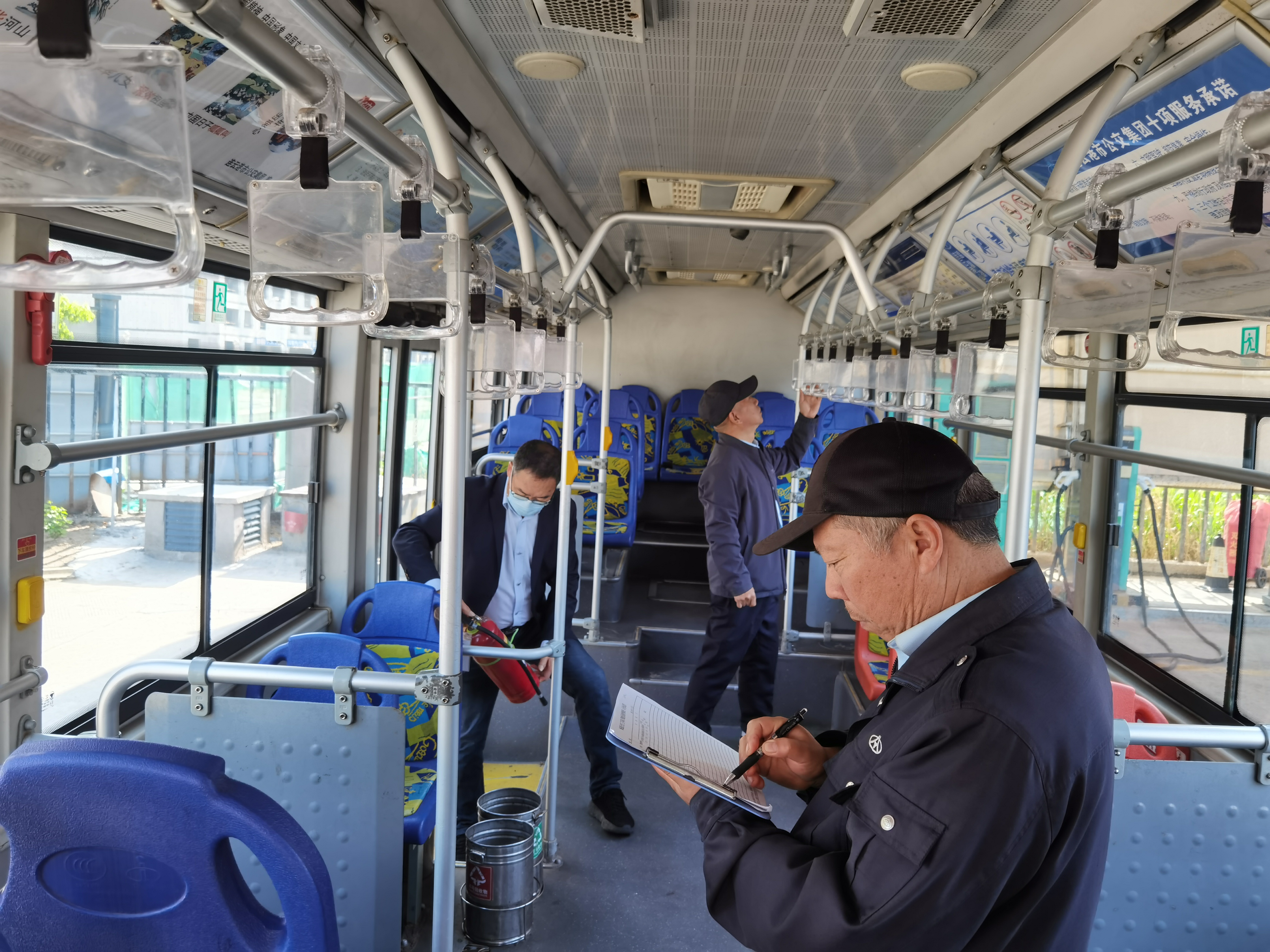 运营车辆技术状况。经历过“五一”假期大考后,高频率的使用对车辆各方面部件都造成了较大压力,本次检查对车辆的转向系统、电路、气路、灯光、制动系统、轮胎磨损度、发动机舱、电车电瓶舱等各方面进行了全面细致检查和维护。并针对车辆水冷系统水管是否漏水、防冻液是否缺少进行了专项检查。与驾驶员进行沟通交流,询问车辆运营现状、易发故障及应急解决方案。
