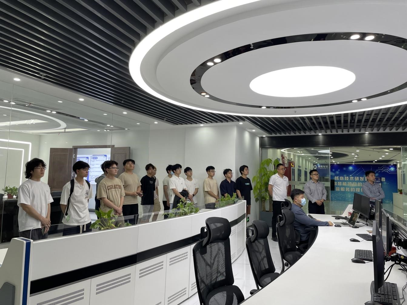 李昊对兰巍一行到智慧公司交流表示了热烈欢迎,并带领师生们先后参观了智慧交通展厅、智慧停车指挥中心等重点板块,详细讲解了智慧公司发展历程、主要产品和技术特色及获得的荣誉专利等情况,并就校企进一步深入合作表达了强烈的意愿。
