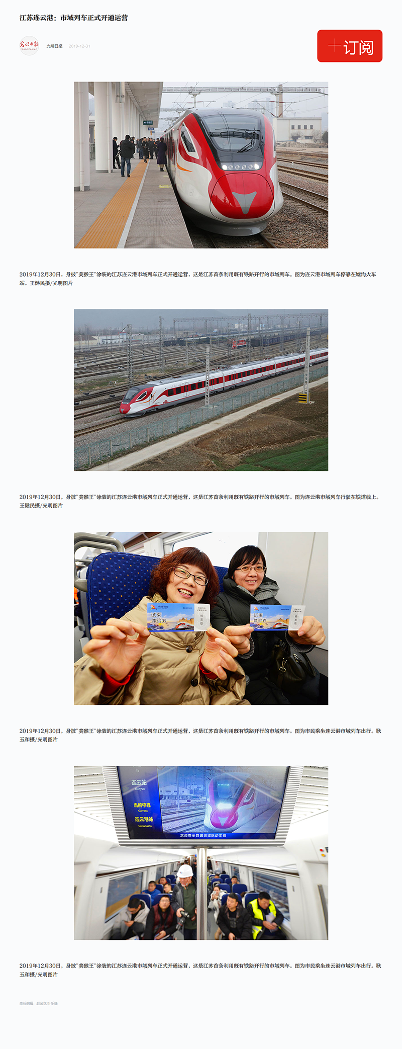 光明日报:江苏连云港城市动车正式开通运营