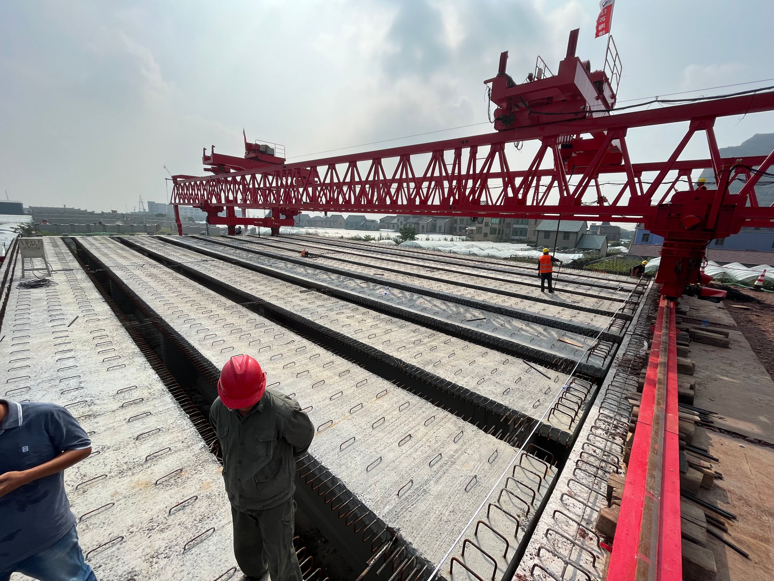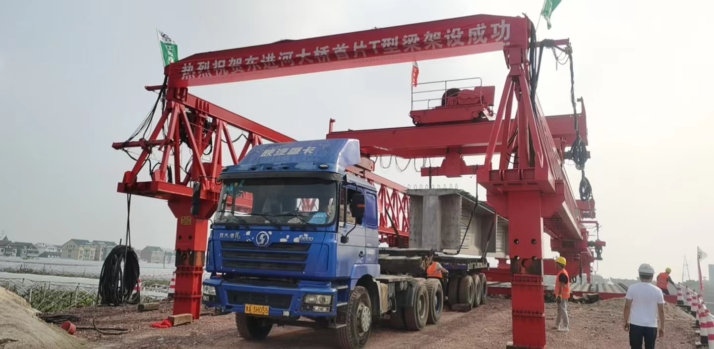 916日上午1008分,江苏海建公司329国道上虞盖北至道墟段改建工程第TJ01标段东进河大桥施工现场热闹非凡,随着JQG130-35A3型架桥的操作流程的进行,作为整个329国道上虞盖北至道墟段改建工程控制性节点工程的东进河大桥,开始了第一片30m预应力混凝土T型梁的架设,首片T型梁的架设也意味着329国道上虞盖北至道墟段改建工程第TJ01标段的施工建设按下了快进键。