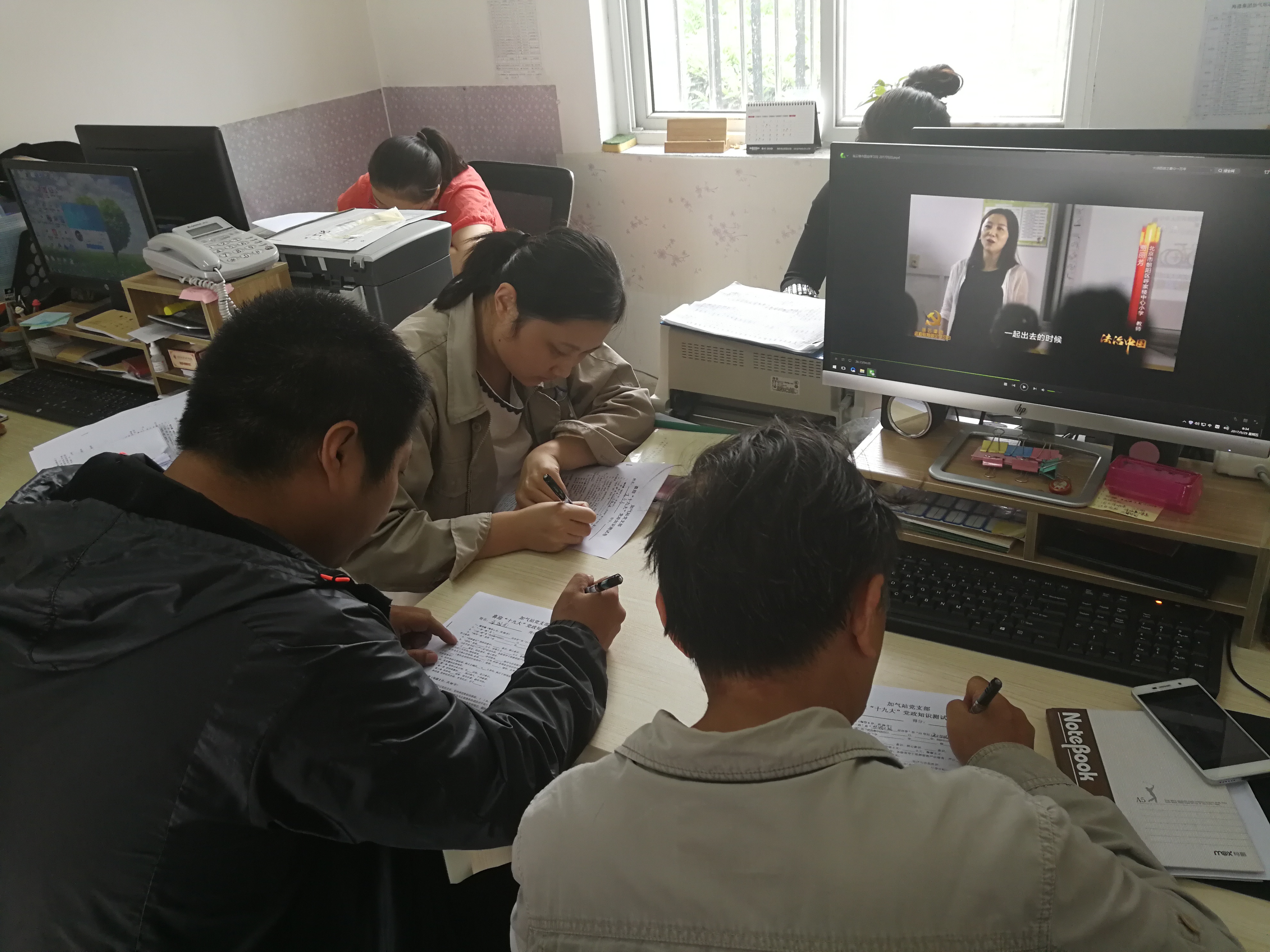 为扎实推进“两学一做”学习教育常态化、制度化,喜迎党的十九大胜利召开,9月29日,加气站党支部在支部党员、积极分子中,组织开展了“喜迎十九大、学习党章党规和习总书记系列讲话”党建知识测试活动。