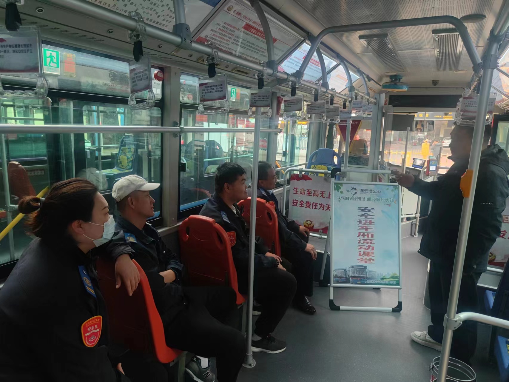 公交车厢内,分公司管理人员针对不同线路的运营特点及驾驶员的驾驶习惯,做细节性的安全培训。在60路车厢中,要求车辆停放在香溢公交场站的驾驶员做好车辆进出场站右转弯的二次起步;在23路车厢中,要求经过学校附近路段时要做好礼让行人及避免紧急刹车;在5路车厢中,要求驾驶员行驶至绿园路时,要严格执行减速慢行,时刻观察人和车辆行驶情况及周围环境变化,保持警觉,平稳驾驶......