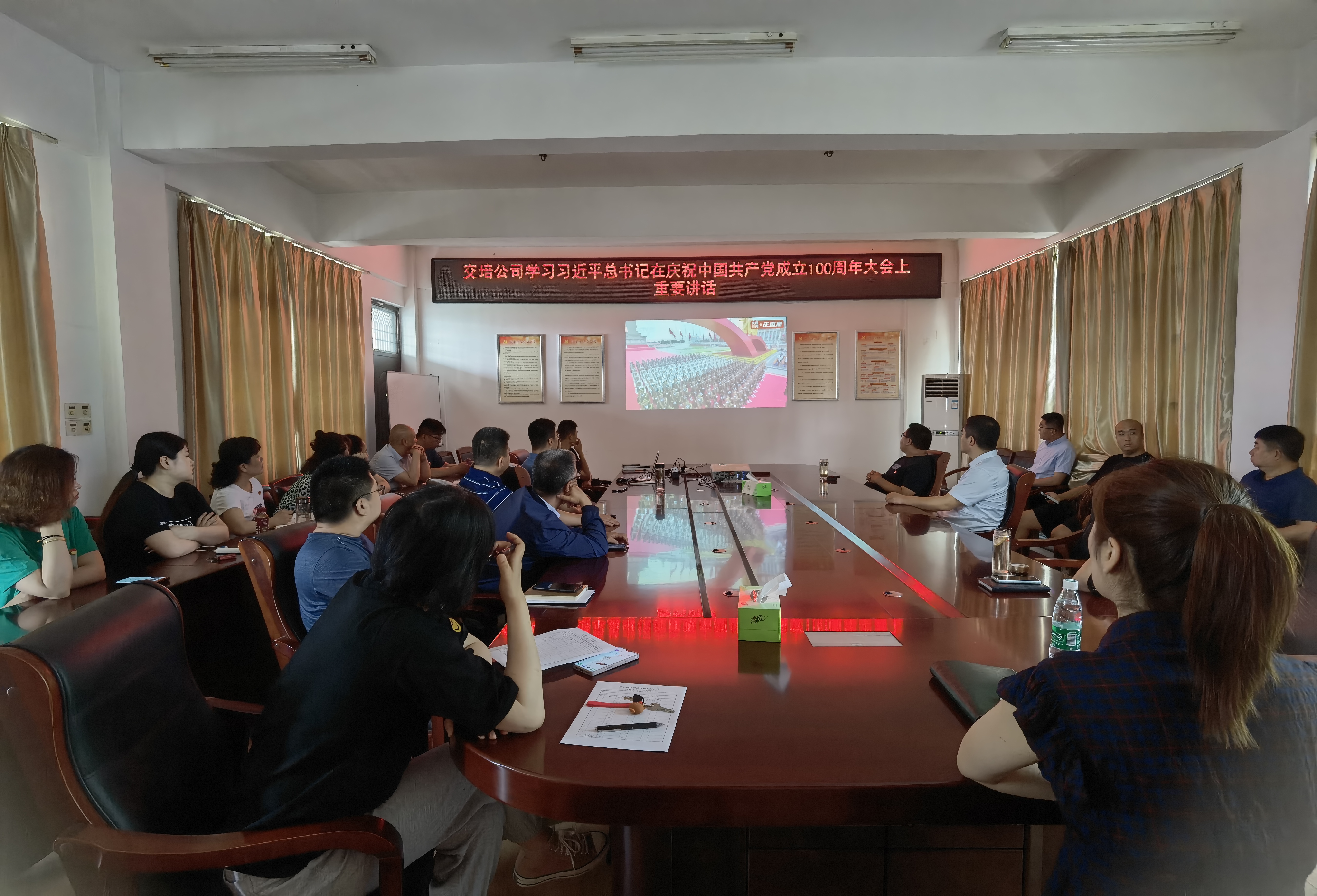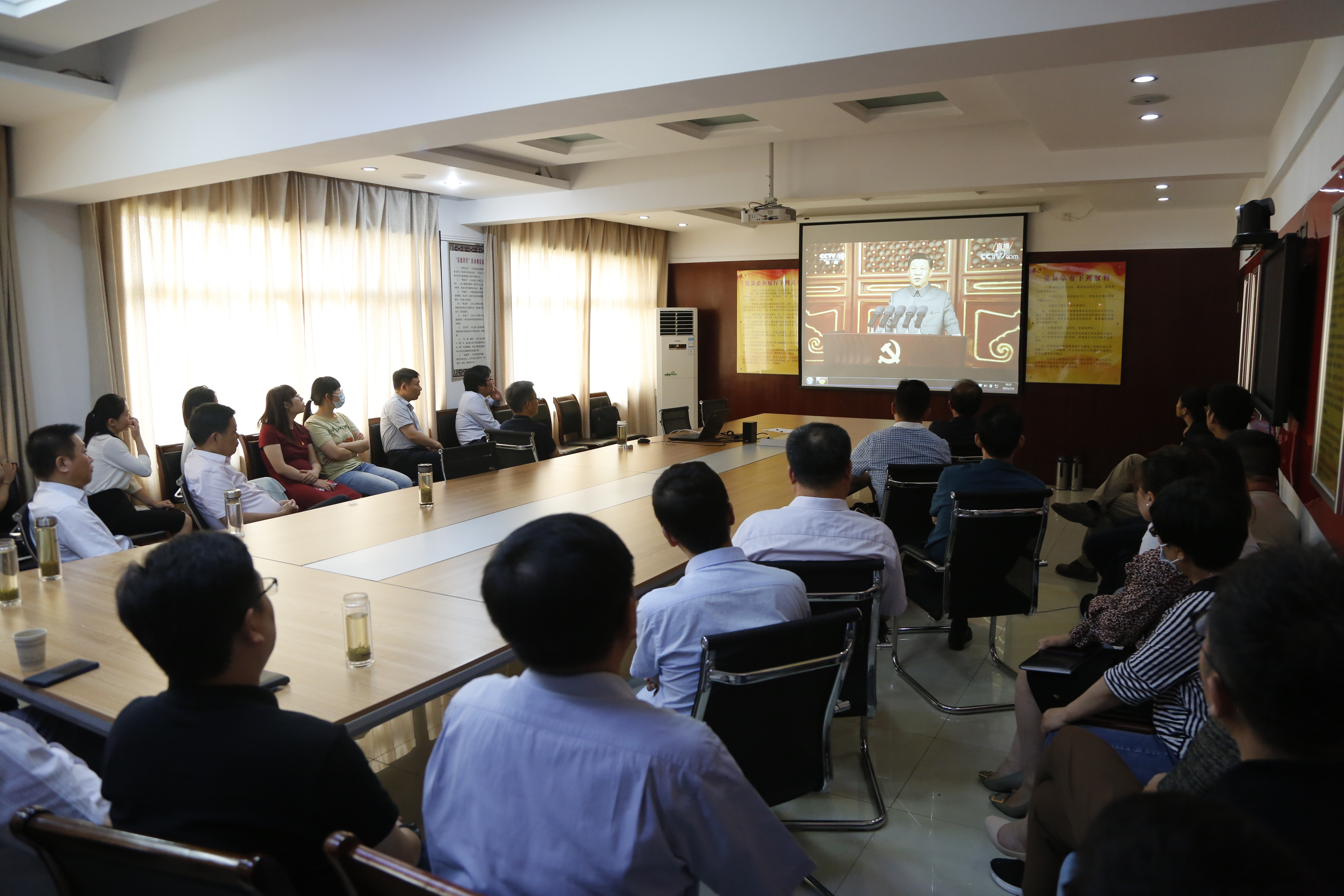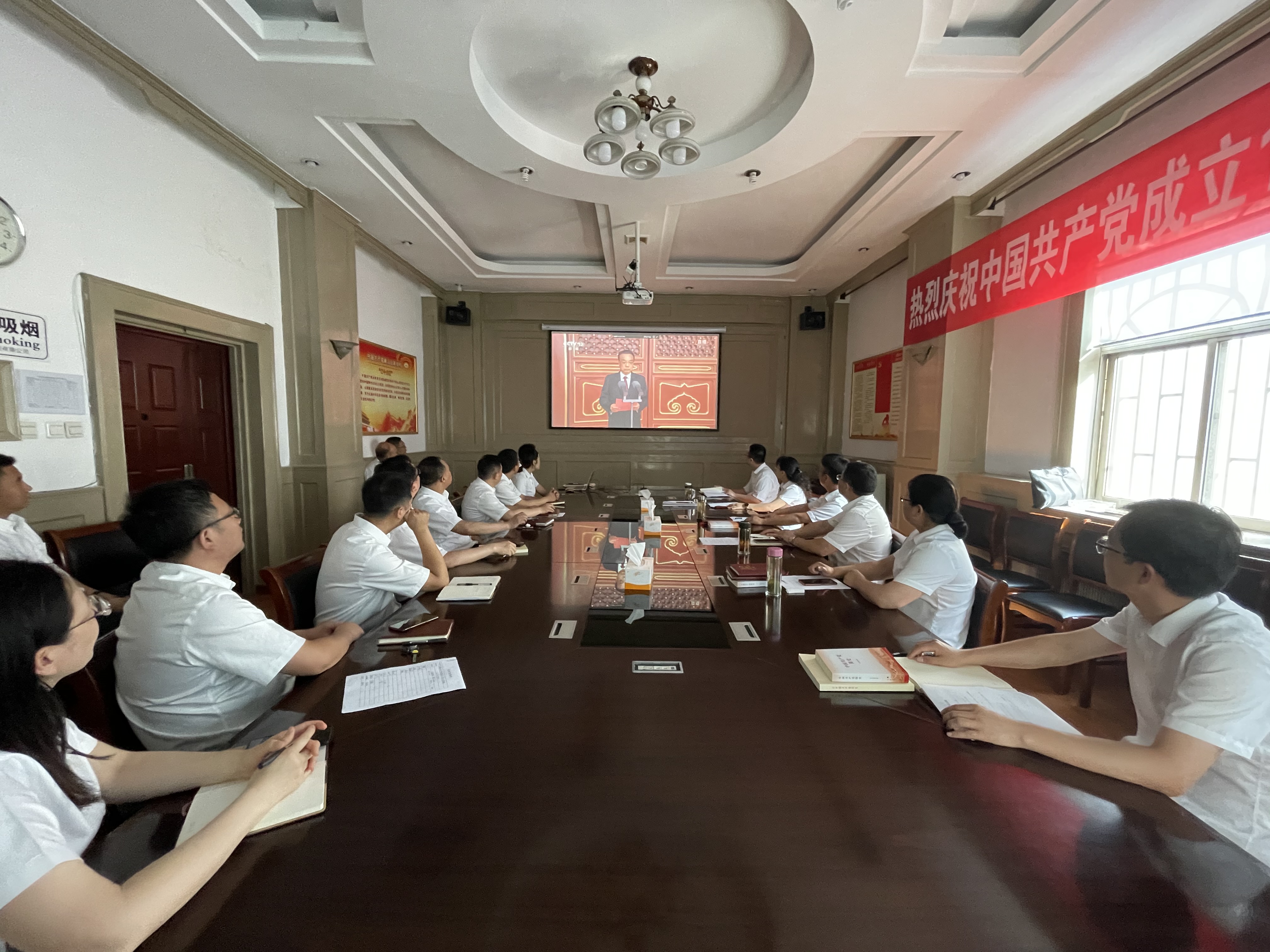 7月1日上午8时,庆祝中国共产党成立100周年大会在北京天安门广场隆重举行,中共中央总书记、国家主席、中央军委主席习近平发表重要讲话。时博app最新版下载,时博(中国)党委组织全体党员职工,以集体收看、生产经营现场小组收看、行动不便党员上门陪学等方式,收看大会盛况,聆听习近平总书记在大会上的重要讲话。
