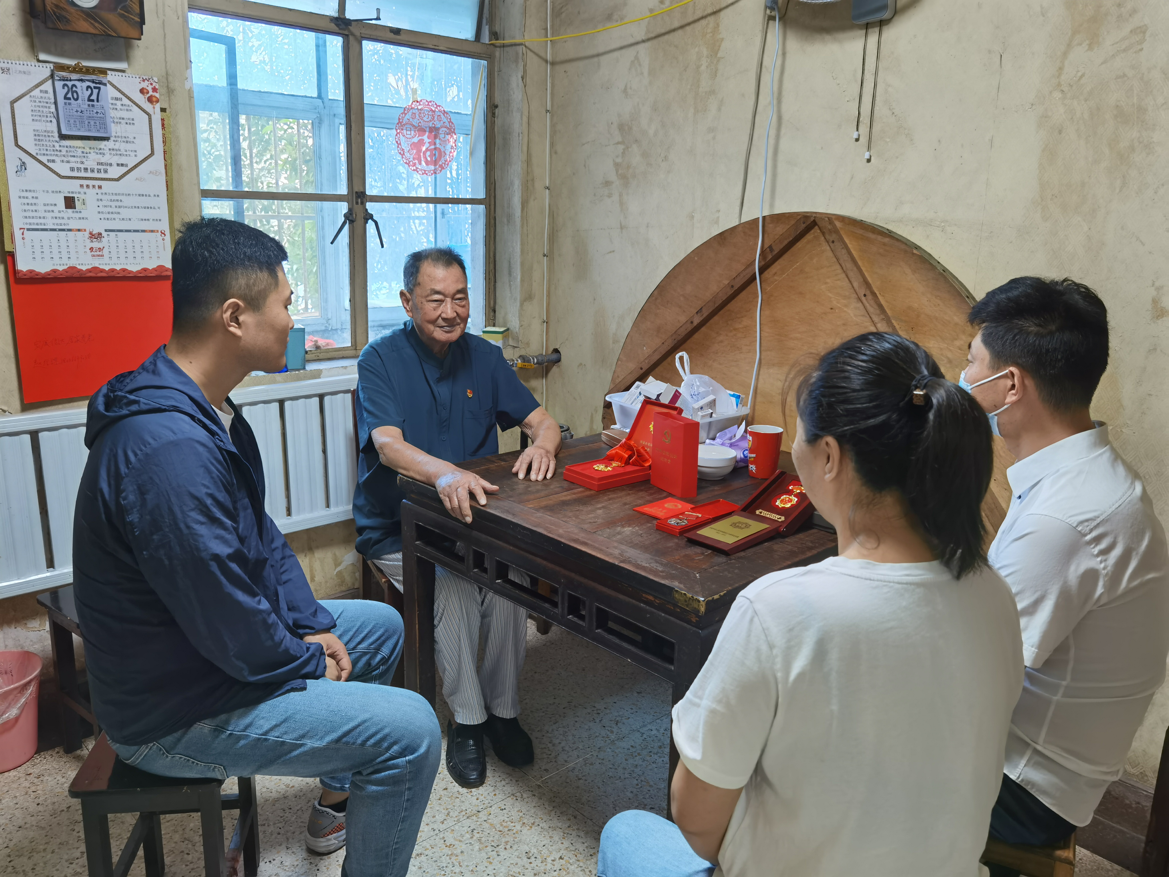 90岁的老党员王寿玉家中,租赁事业部的党员、积极分子看到了王老“光荣在党50年”纪念章、“全国交通系统先进生产者”等荣誉。这一枚“光荣在党50年”纪念章,承载着老党员对党的初心,也是对他们砥砺初心本色、践行使命担当的最高认可。随后大家与老人促膝交流,询问老人的身体状况和生活情况,倾听他追忆难忘的奋斗岁月、讲述如今的幸福生活。这位有着六十多年党龄的老党员离休后仍十分关心企业发展的情况,也喜爱和年轻人交流,并坚持每天阅读,参与党史相关书籍学习。党员们纷纷表示,要向老党员学习,传承优良作风,永葆共产党员政治本色,为企业发展加油鼓劲、建言献策。