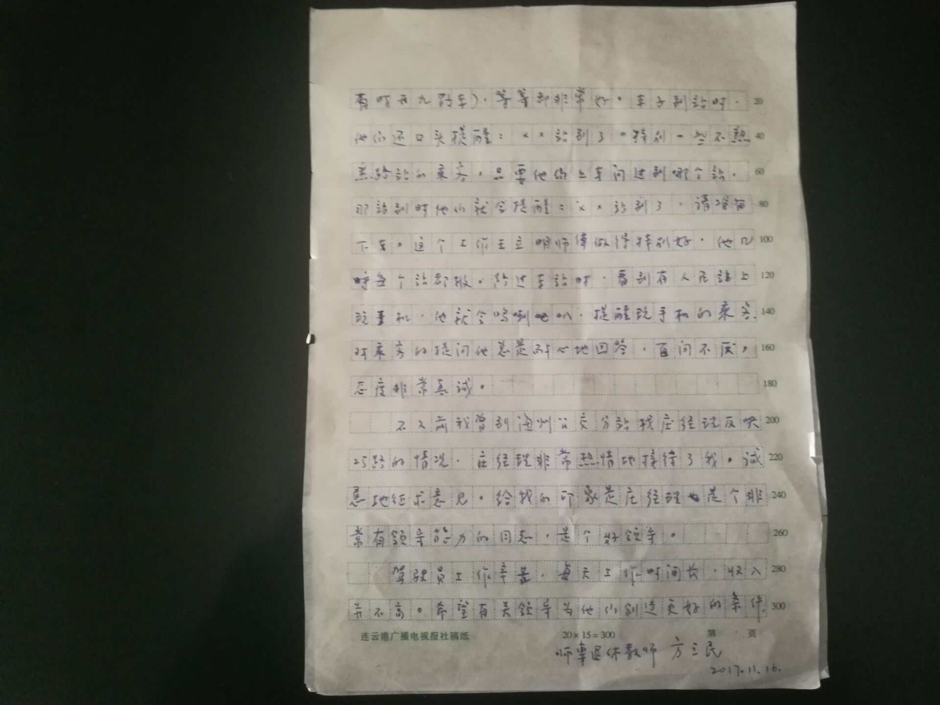 信件的最后,方老先生表示虽然写的都是一些小事,却处处体现出25路线驾驶员们工作中的认真与细心,同时也彰显出公交时博app最新版下载,时博(中国)驾驶员的优质服务精神。公交时博app最新版下载,时博(中国)驾驶员每天都很辛苦,感谢25路线驾驶员们的优质服务,希望公交时博app最新版下载,时博(中国)的发展越来越好。