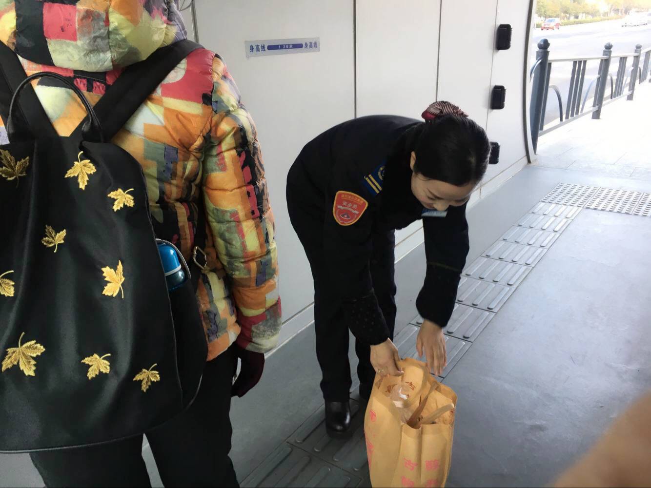 站务员在面对带有大的行包来乘车的乘客,会严格遵守公司的规章制度!坚持“逢液必问,逢疑必问,逢包必查”的工作原则,不放过任何一个可疑细节。在严格遵守公司规章制度的同时,也要注意工作方式方法,把握好说话的技巧。每到早晚高峰时,站务员更是要认真服务。面对那些站内拥挤的人流,站务员通过语音报站来提醒乘客有序乘车,遇到不懂怎么坐车的,会耐心的和乘客说明,直到乘客明白为止。遇到那些年纪大的,需要特殊对待的乘客,我们还会写张便条方便乘车,或者是送上车与驾驶员做好交接。